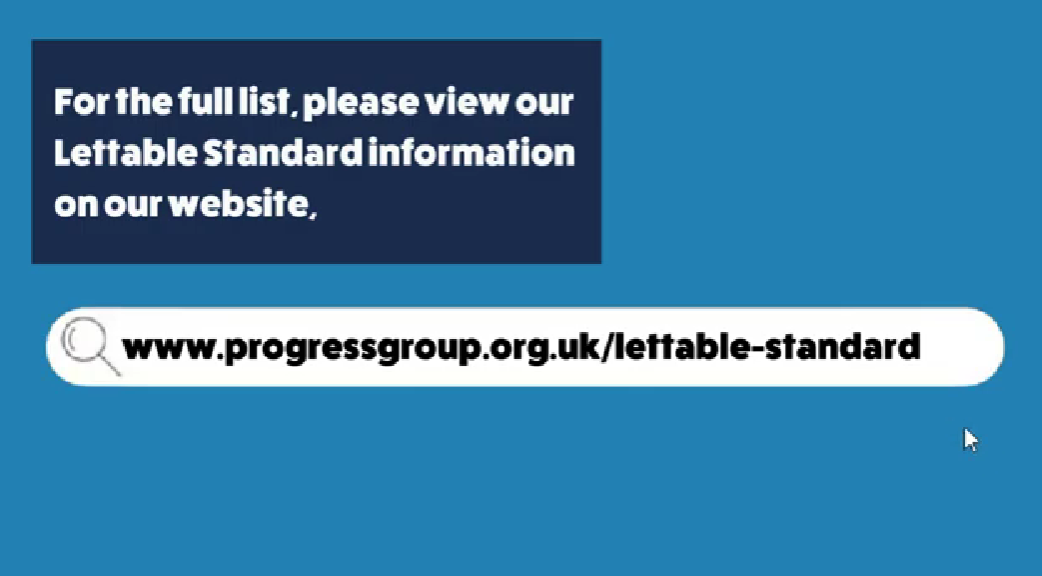 The Lettable Standard is the minimum standard that the property will have achieved in terms of its overall state of repair, condition and cleanliness and can be expected by anyone moving into one of our properties. All our properties will comply with the standards outlined in the Homes (Fitness for Human Habitation) Act 2018.